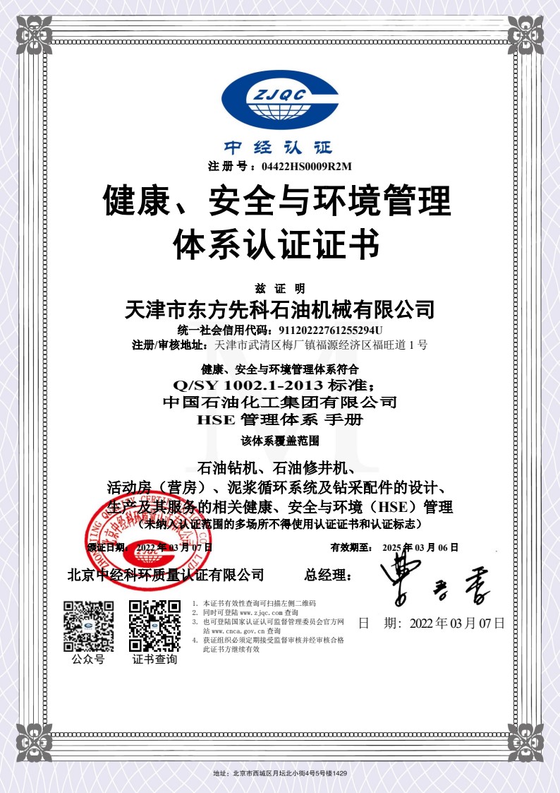 健康、安全與環(huán)境管理體系認(rèn)證證書(shū)